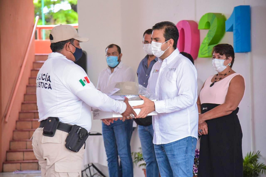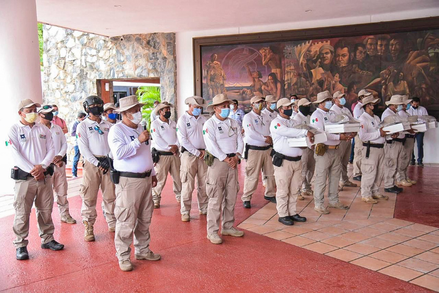 Zihuatanejo, Gro.- Al continuar dignificando el trabajo de quienes dedican tiempo y esfuerzo para salvaguardar la integridad física y patrimonial de los visitantes de Ixtapa-Zihuatanejo, el presidente Jorge Sánchez Allec encabezó este jueves la entrega de uniformes completos a los 35 elementos de la Policía Turística, dependiente de la dirección de Seguridad Pública Municipal.