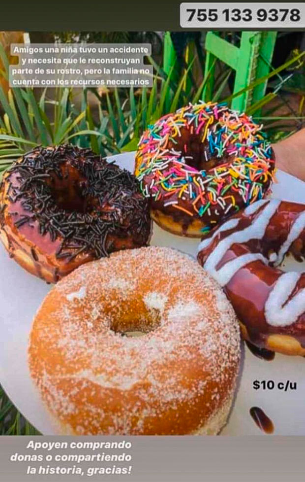 Zihuatanejo, Gro.- Amigos y familiares, iniciaron la producción y venta de donas para apoyar a Jaqueline de 15 años de edad, vecina de la colonia Buenos Aires, municipio de Zihuatanejo, quien resultó con severas lesiones y requiere de traslado e intervención quirúrgica.