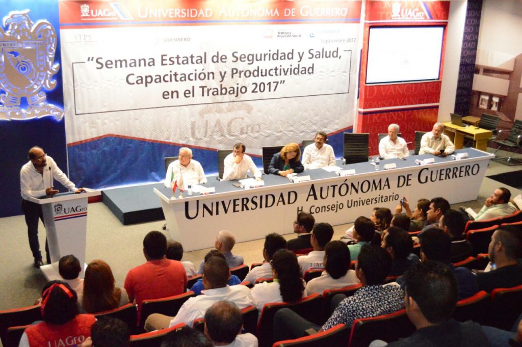 En representación del gobernador del estado, Héctor Astudillo Flores, el titular de la Secretaría del Trabajo y Previsión Social, Oscar Rangel Miravete, asistió a la Semana Estatal de Seguridad y Salud, Capacitación y Productividad en el Trabajo 2017 en las instalaciones de rectoría de la UAGro.