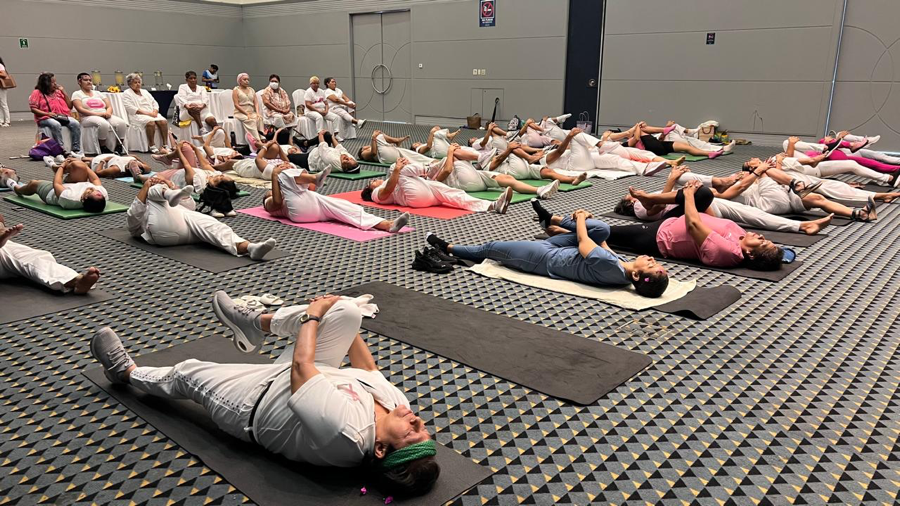Zihuatanejo, Gro.- Con gran respuesta se llevó a cabo la clase de yoga para pacientes con cáncer en el Hotel Azul Ixtapa, donde participaron alrededor de 80 mujeres.