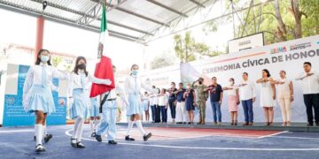 Educación Presidente Jorge Sánchez Allec inaugura techumbre de escuela primaria Sor Juana Inés de la Cruz 08/05/2023