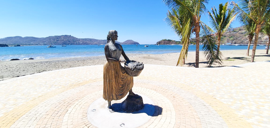 Algunas personas que pasaban por el flamante andador se tomaban fotos en las estatuas de bronce de mujeres representativas de las 7 regiones del estado de Guerrero.