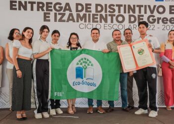Zihuatanejo, Gro.- El presidente Jorge Sánchez Allec encabezó la entrega de distintivo Eco-Schools así como el izamiento de la bandera...