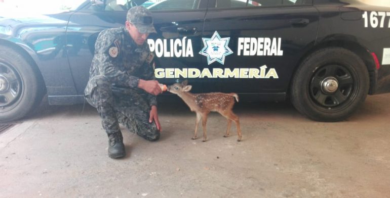 La División de Gendarmería de la Policía Federal rescató de cazadores furtivos a una cría de venado en Coyuca de...