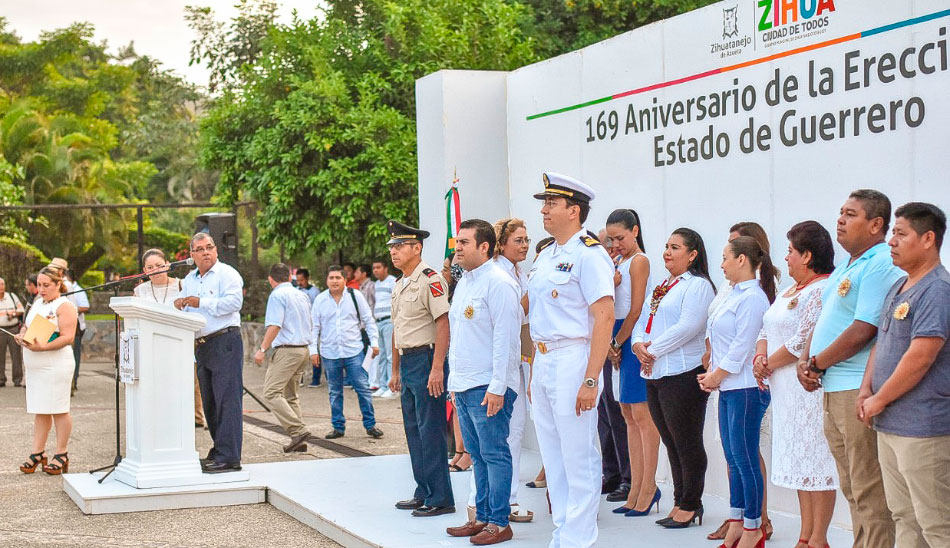 Zihuatanejo, Gro.- El presidente municipal Jorge Sánchez, encabezó el acto conmemorativo al 169 aniversario de la Erección del Estado de...