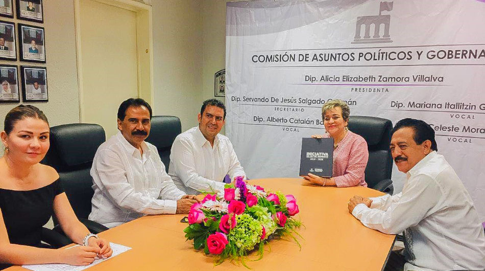 El presidente municipal Jorge Sánchez Allec, acompañado de los diputados locales por los Distritos 11 y 12, Adalid Pérez Galeana...