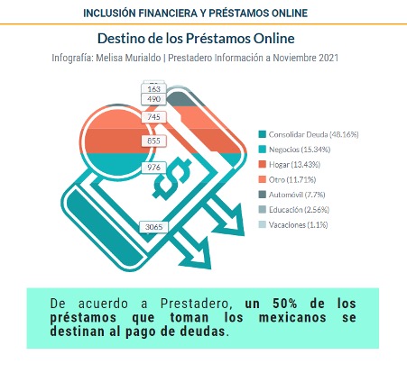 Durante la pandemia, hubo un crecimiento en las solicitudes de créditos que se mantiene en la primera etapa del año 2021. En el año completo 2020, el ritmo para solicitar crédito fue del 42,6% mientras en lo que respecta a la primera parte del año del 2021 se encuentra en un 39,72%, es decir, un número elevado considerando que han acontecido 9 meses del total del año. La mayoría de los créditos que solicitan los mexicanos son para pagar deudas.