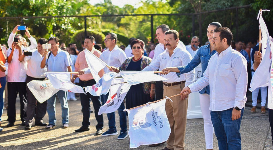 Zihuatanejo, Gro.- El presidente municipal Jorge Sánchez acompañado por el Jefe de la Jurisdicción Sanitaria 05 Costa Grande, Juan Manuel Álvarez Barajas y el director de Salud, Onasis Pinzón Oregón encabezó el banderazo de arranque de la Jornada de Nebulizaciones Especial y Térmica la cual tiene como finalidad atender las zonas con más índice larvario, y con ello reducir los riesgos de transmisión del Dengue, Zika y Chikungunya.