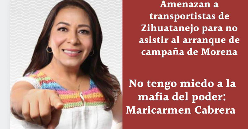 «los transportistas están siendo amenazados de quemarles sus combis si le dan el servicio a Maricarmen Cabrera, si trasladan a alguna gente, sí pagan su pasaje para venir al arranque de campaña de Maricarmen Cabrera”.