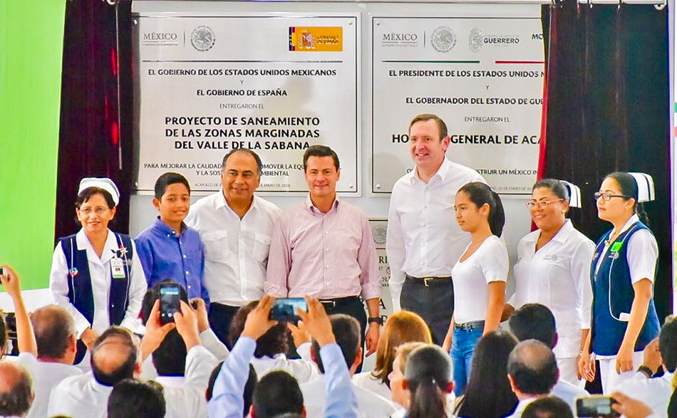 Acapulco, Gro., Enero del 2018.- Más de un cuarto de la población Acapulqueña es beneficiada con la entrega del Proyecto de Saneamiento en Zonas Marginadas del Valle de la Sabana que realizaron el Presidente de la República, Enrique Peña Nieto y el gobernador de Guerrero, Héctor Astudillo Flores acompañados por Luis Fernández-Cid de las Alas Pumariño, Embajador Extraordinario y Plenipotenciario del Reino de España en los Estados Unidos Mexicanos.