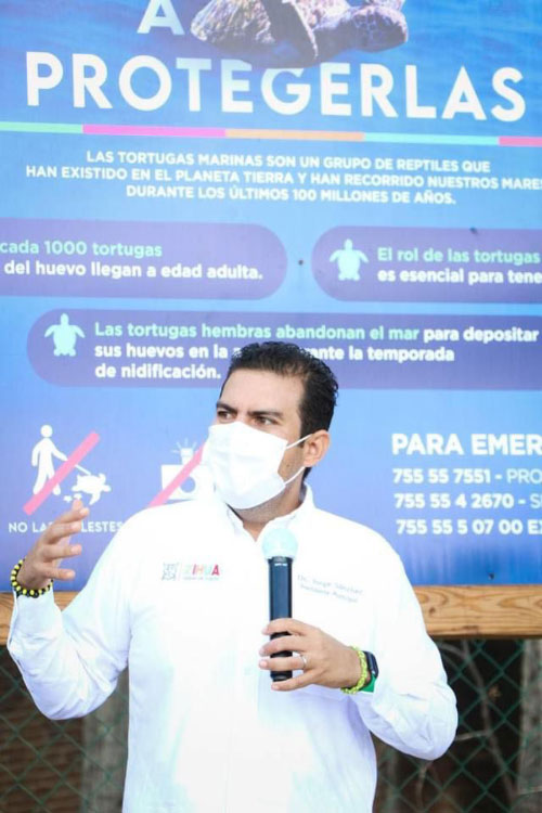 Dando seguimiento al programa de Conservación del Medio Ambiente, el presidente municipal Jorge Sánchez visitó dicho campamento tortuguero, uno de los tres a cargo de la administración municipal.