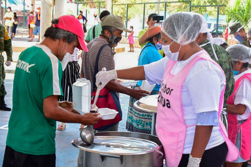 Cabe mencionar que se cumplieron con todas las medidas de higiene y sana distancia estando involucrados los tres niveles de gobierno donde la SEDENA elabora los alimentos y en coordinación con el Gobierno del Estado se distribuyen a través del Ayuntamiento.