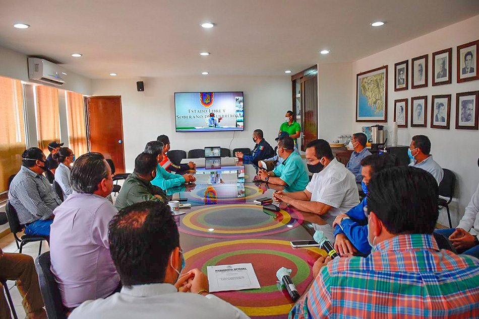 Esta reunión virtual se llevó a acabo en la sala de Cabildo del H. Ayuntamiento de ZIhuatanejo, la cual estuvo presidida por el jefe de la oficina del gobernador Alejandro Bravo Abarca, el presidente municipal Jorge Sanchez Allec, así como distintas autoridades estatales y municipales.