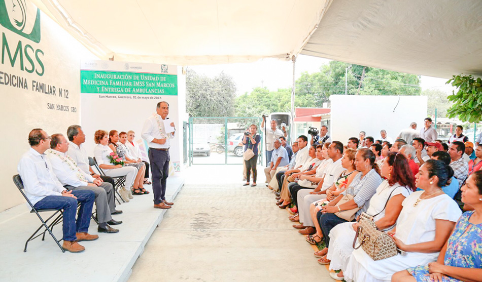 Destaco, que en la construcción y equipamiento de la doceava Unidad de Medicina Familiar del IMSS que atenderá a habitantes de San Marcos, además durante este evento se entregaron dos ambulancias que son parte del equipo que prestará servicios médicos a sus habitantes.