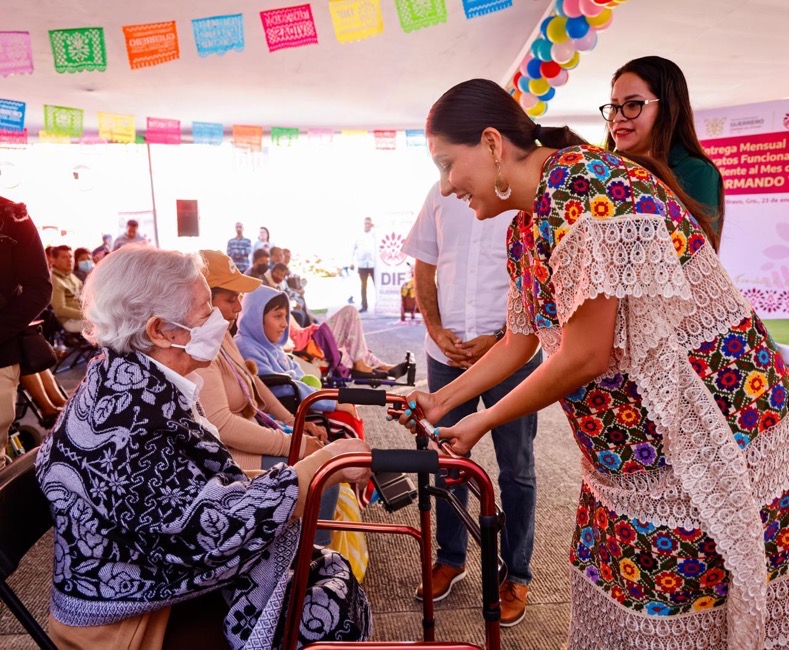 Chilpancingo, Gro, 23 de enero del 2024.- La presidenta honoraria del DIF Guerrero, Liz Salgado Pineda, encabezó el evento de inició de entregas mensuales de aparatos funcionales del 2024, para grupos vulnerables de diversos municipios del estado.