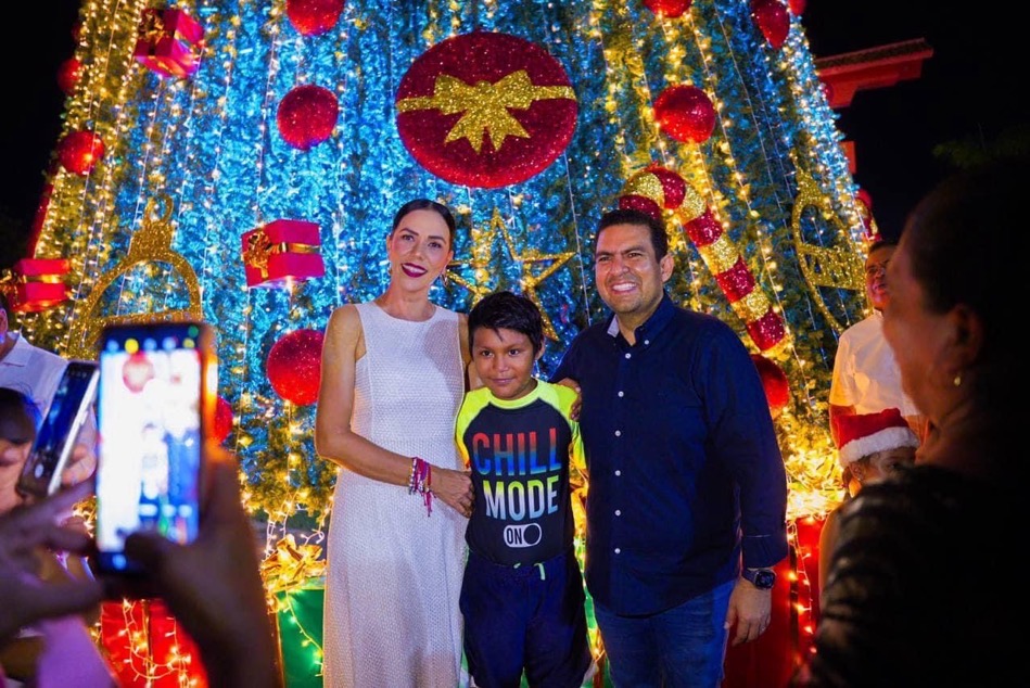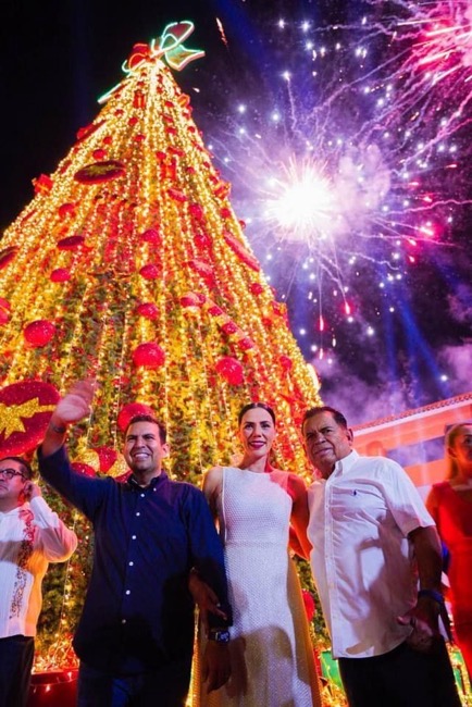 Agradeció a su esposa Lizette Tapia por todo el gran trabajo realizado para lograr una decoración mejor que nunca y una vez encendido el árbol se dio la gala de los fuegos pirotécnicos preparados para la celebración y que causaron una gran euforia entre los cientos de familias que se dieron cita en la Plaza Kioto.