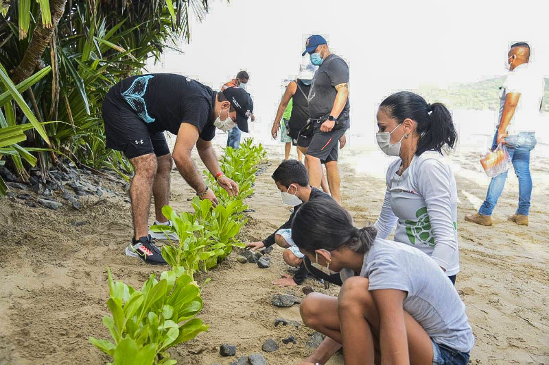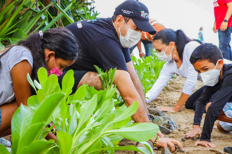 ZihuatanejO, Gro.– Siendo la preservación del medio ambiente un tema de alta prioridad para el gobierno de Zihuatanejo de Azueta, este domingo el presidente Jorge Sánchez Allec y su esposa Lizette Tapia Castro encabezaron los trabajos de reforestación en el campamento tortuguero que en fecha reciente se instaló en la playa de La Ropa, con la finalidad de que ese espacio ofrezca una mejor imagen a visitantes y residentes del destino turístico.