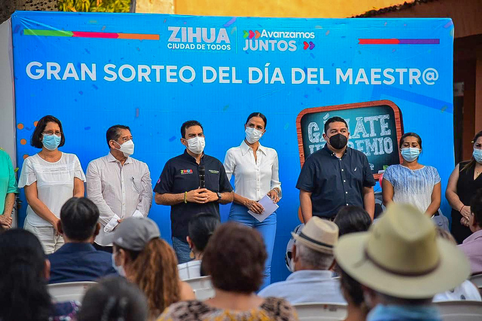Zihuatanejo, Gro.- En una acción inédita y en el marco de la celebración del Día del Maestro, el gobierno de Zihuatanejo que preside Jorge Sánchez Allec sorteó un automóvil a los maestros en activo y jubilados del municipio, en lo que se denominó el Gran Sorteo del Día del Maestro. El ganador fue Martín Torres Olguín de la primaria 20 de noviembre.