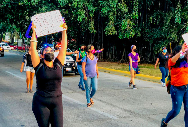 Zihuatanejo, Gro.- Tres organizaciones de mujeres marcharon durante la tarde-noche del miércoles por las calles de Zihuatanejo para conmemorar el día internacional de la eliminación de la violencia contra la mujer.