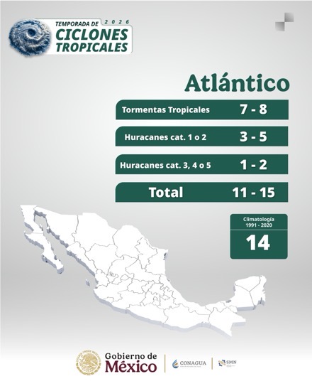 - Pacífico: se esperan entre 18 y 21 sistemas tropicales, con 4 a 5 huracanes mayores previstos.