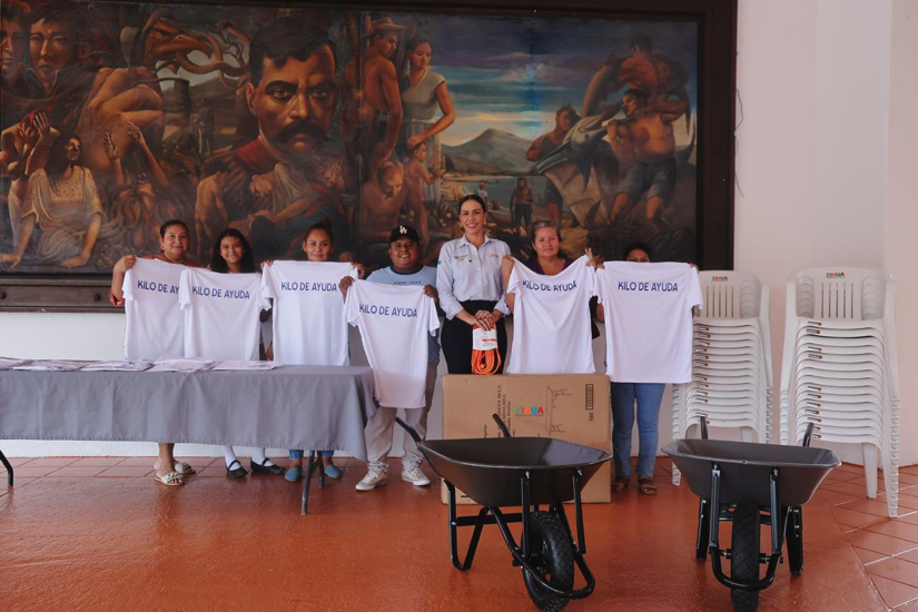 Zihuatanejo, Gro.- En una muestra de solidaridad con quienes buscan hacer el bien a los demás, la presidenta Lizette Tapia Castro entregó este lunes diversos materiales de apoyo a un grupo de habitantes del municipio que impulsa el proyecto comunitario “Kilo de Ayuda”, encabezado por Eduardo Moreno Martínez.