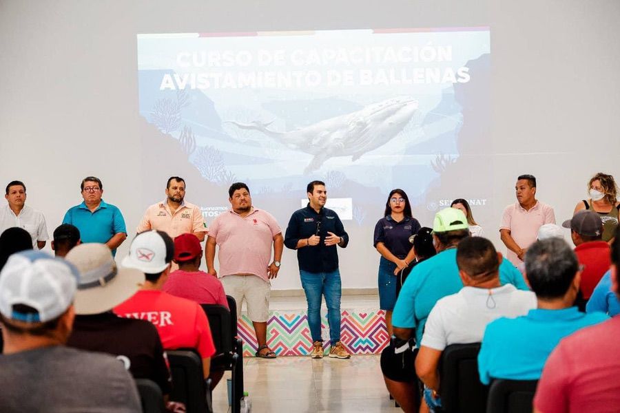 Sobre el avistamiento anual de ballenas, el presidente Sánchez Allec resaltó que se trata de una actividad que “ayuda y ayuda mucho, porque no afectamos a los mamíferos, porque nos programamos para hacer estas visitas guiadas de una manera responsable, de una manera alineada a lo que marca la autoridad federal, y con ello vamos a garantizar el cumplimiento de la Norma, pero también la satisfacción de quienes van a necesitar de su servicio”.