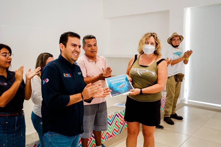 A Gabriela Mendoza Espinoza y Allison Fabiola Medina Aguirre, representantes de la SEMARNAT Y PROFEPA, respectivamente, así como a Katherina Audley, directora del Proyecto Ballenas de Guerrero, y a los directivos del sector pesquero en Zihuatanejo de Azueta y Petatlán, les reconoció su compromiso con el medio ambiente en estas costas.