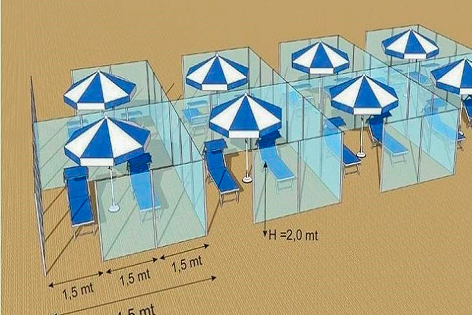 Ante la cercanía del verano, y las medidas de confinamiento por el coronavirus que gradualmente se han ido levantando en países europeos como Italia y España, se propone instalar unas mamparas de cristal o policarbonato transparente para aislar a los turistas debido a la pandemia.