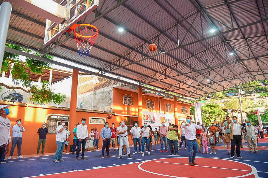 Zihuatanejo, Gro.- Con un beneficio para 800 habitantes el presidente Jorge Sánchez Allec inauguró la techumbre y la rehabilitación integral de la colonia 12 de Marzo como parte del programa de Rescate de Espacios Públicos, avanzando de esta manera en la rehabilitación de este tipo de espacios deportivos en todo el municipio de Zihuatanejo.