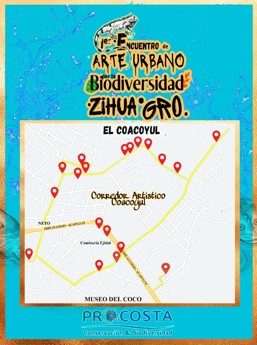 ZIHUATANEJO, GRO.- Artistas de distintas partes de la República, el estado y el municipio, se dieron cita este fin de semana en la comunidad del Coacoyul, en donde se realizó con éxito el Primer Encuentro Urbano por la Biodiversidad, organizado por la Asociación Civil Procosta México A.C.