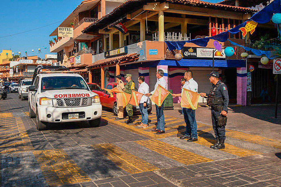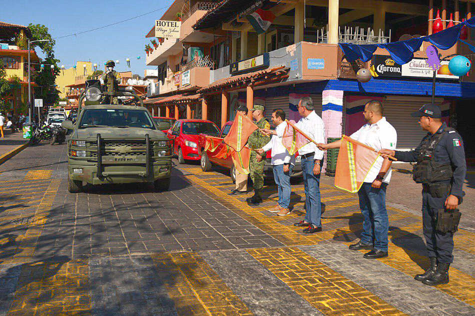 Zihuatanejo, Gro.- El alcalde Jorge Sánchez Allec junto a autoridades civiles y militares dio el banderazo de arranque del plan de acción federal DN-III que puso en marcha la Secretaría de la Defensa Nacional (SEDENA). Es un operativo de voceo en colonias y comunidades para recomendar a la gente a que en la medida de lo posible se quede en casa para redoblar los esfuerzos para disminuir la propagación del COVID-19, informó el presidente de Zihuatanejo, Sánchez Allec.