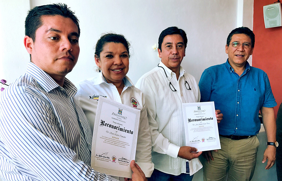 El alcalde Gustavo García Bello y su esposa Maricruz Galeana Leyva, presidenta del DIF Municipal, entregaron este lunes sendos reconocimientos ...